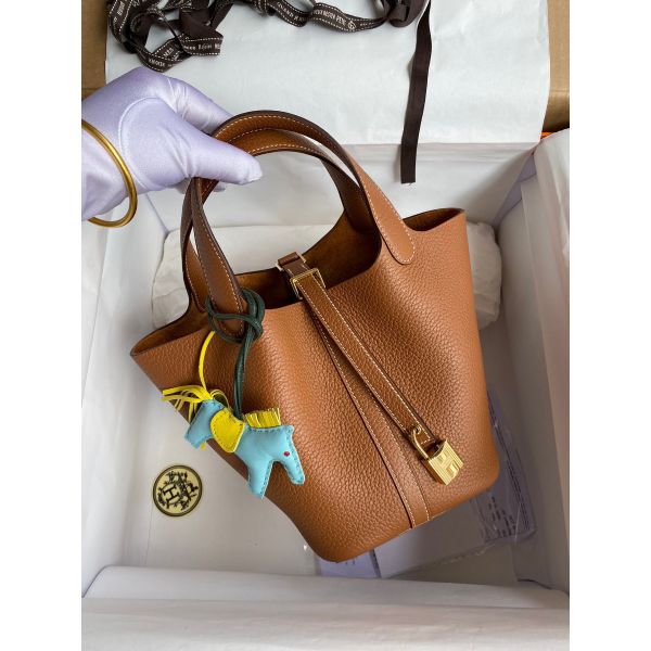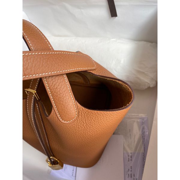 Hermes Picotin Lock 22 Handmade Bag in Gold Clemence Leather