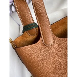 The Hermès Picotin 22 or MM (Moyen Model) is a luxurious take on the traditional bucket bag. Picotin bags harken back to Hermès’ roots as harness and tack leatherworks for French nobility. Inspired by horse feed bags and named for the portion of grain the bags hold, this humble inspiration led to one of the most casual of Hermès luxury handbags with a slouchy style and contemporary appeal. Since 2002, the simple leather strap closure has sported the iconic Hermès lock, giving these bags the name “Picotin lock”. As a chic carryall with a minimalist design, the Picotin 22 belongs in your wardrobe!