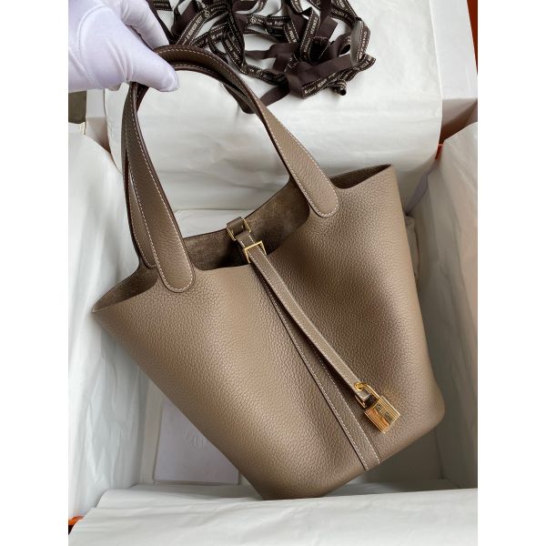 Hermes Picotin Lock 22 Handmade Bag in Taupe Clemence Leather