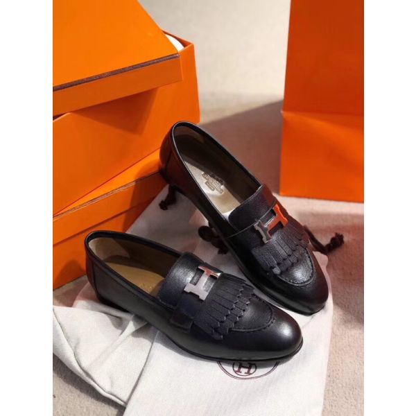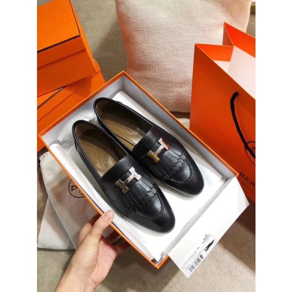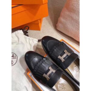 Hermes reworks its coveted ‘Royal’ loafers for the new season with a comfortable rubber heel. This smooth calfskin pair is decorated with a fringed trim that tops the neat toe. We like how the palladium-plated H buckle has an aged finish to mark it out as a heritage feature.