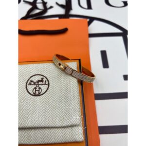 The Kelly is a name synonymous with Hermes. It is a symbol of their wondrous dedication to craftsmanship and classic style. First designed by Robert Dumas, the Kelly bag is known and coveted around the world. The lock of the bag, which is a turn lock, now appears in bracelets and jewelry. This bangle bracelet also carries the iconic Kelly lock. Decorated with diamonds and each one is placed to catch the light at every angle. Brimming with lavish details and artistry, this wondrous creation deserves to be yours.