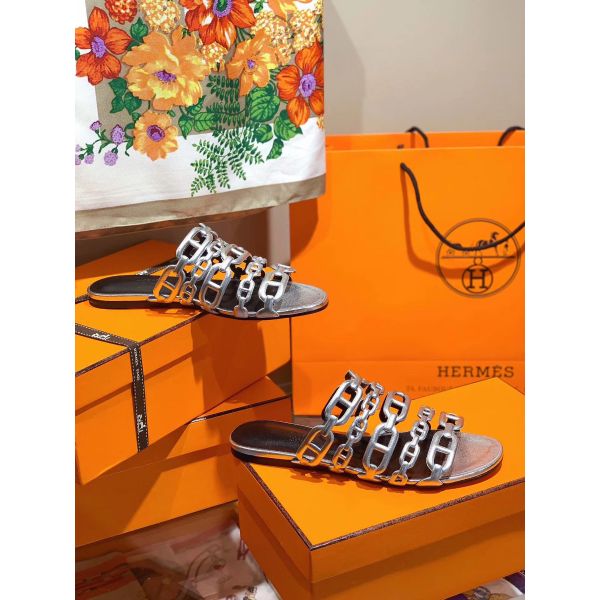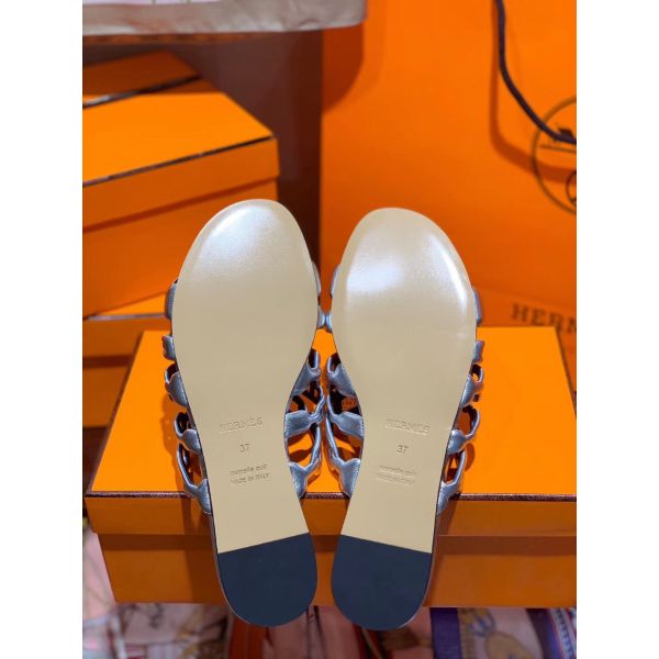 Hermes Oran Slide Sandals in White Swift Calfskin with Printed Lining