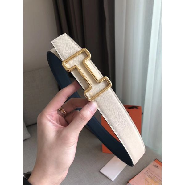 Hermes Mini Constance 24mm Belt in White Epsom Leather and Gold Swift Leather