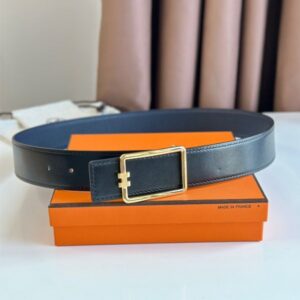 Hermes H Striee Reversible Belt 32MM in Blue and Black Epsom Calfskin