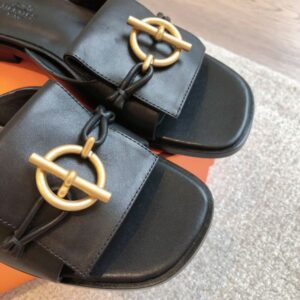 The Hermes Isle Sandal is a relaxed yet elegant style crafted from smooth calf leather. This model is notable for its wide front strap which is embellished with the iconic Glenan buckle. A nautical style for a modern and casual look.
