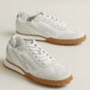 The Hermes’s Jet sneaker skillfully blends style and color. Its discreetly retro design is enhanced by the “H en biais” motif, giving it a unique allure. Fashioned from Nappa leather with contrasting design for a bold retro look. The rubber soles with Hermes H logos will quite literally put a spring in your step.