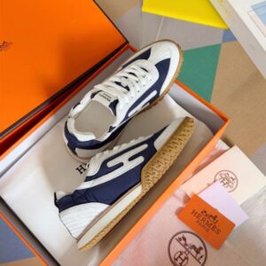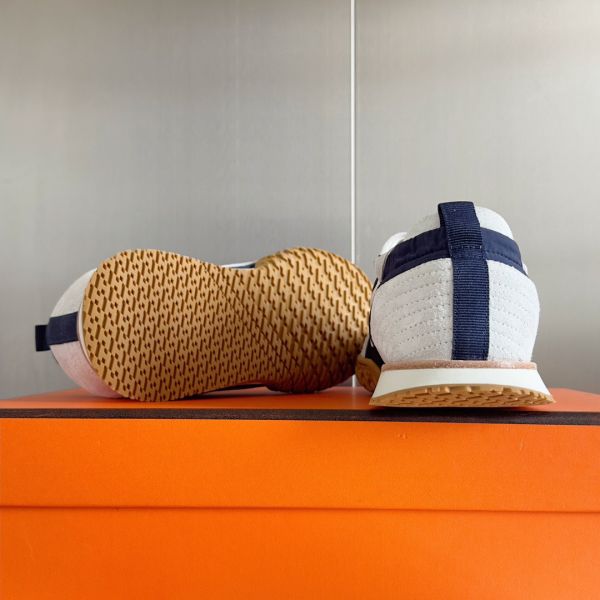 The Hermes’s Jet sneaker skillfully blends style and color. Its discreetly retro design is enhanced by the “H en biais” motif, giving it a unique allure. Fashioned from technical canvas and suede goatskin with contrasting design for a bold retro look. The rubber soles with Hermes H logos will quite literally put a spring in your step.