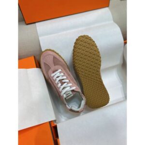 The Hermes’s Jet sneaker skillfully blends style and color. Its discreetly retro design is enhanced by the “H en biais” motif, giving it a unique allure. Fashioned from suede calfskin with contrasting design for a bold retro look. The rubber soles with Hermes H logos will quite literally put a spring in your step.