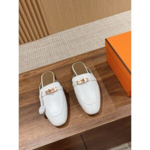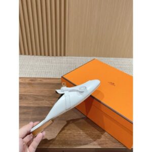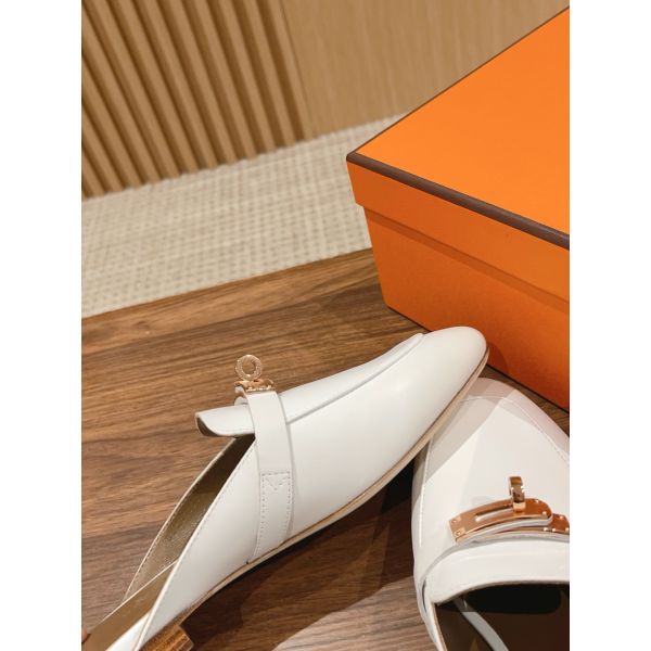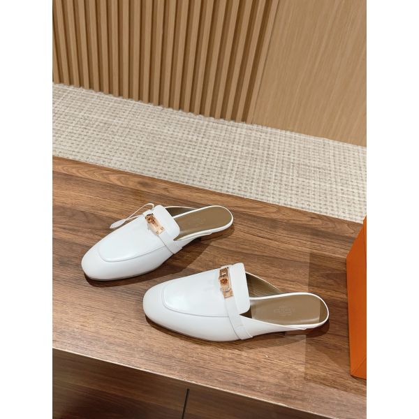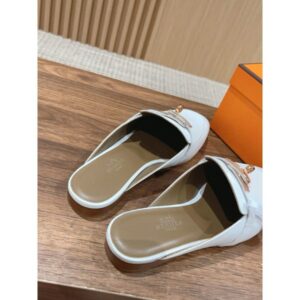 Hermes Oran Slide Sandals in White Swift Calfskin with Printed Lining