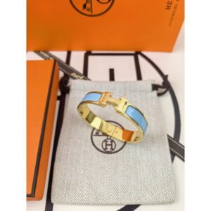 Hermes Blue Ciel Enamel Clic H Bracelet
